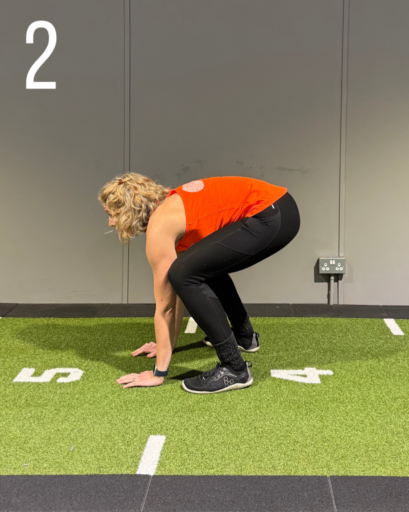 - Not placing your palms on the floor – only using fingertips can put too much pressure through your fingers. FIX IT – this can be due to poor hip mobility, so try bending your knees more.